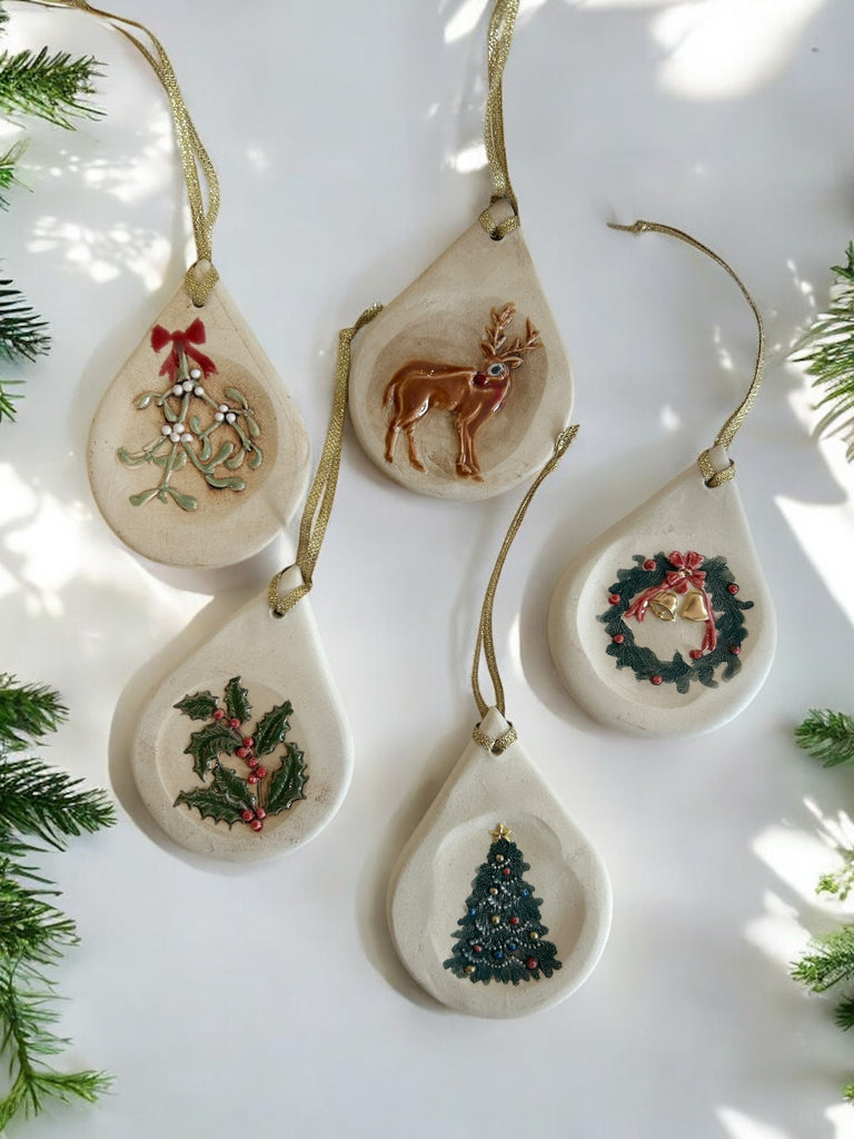 JEN STEIN - NJ I have been working in clay since 1994 and absolutely love throwing porcelain on the wheel. Over the years I have made miniatures, large alto-rilievo murals, functional ware, figurative sculpture, and even bathroom sinks. For the last decade my focus has been making rouletted pottery - intricate bas-relief textures impressed into the rim of my thrown porcelain pots with a hand-carved roulette. I love to sculpt new roulettes (round stamps) so I now have many patterns to offer – mostly inspired by nature. Each pot is numbered and signed, each a carefully detailed yet functional centerpiece. My technique has been adapted to include holiday-themed ornaments as well as tiles and coasters.