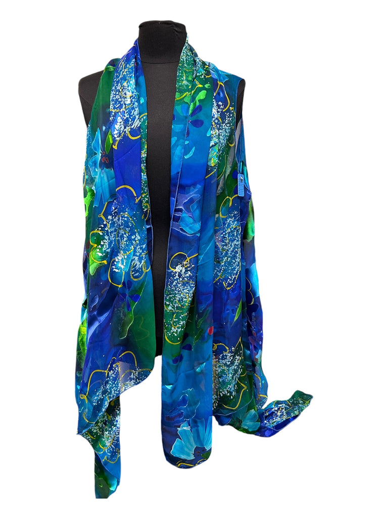 "Kriska" is considered the longest established and best known silk painting studio in the USA. To their many credits are two month long exhibitions in the Renwick Gallery of the Smithsonian Institution, over twenty-five National awards of excellence in wearable art and three Niche Awards, widely considered the Oscars of American Craft. Kriska has received commissions from the International Olympic Committee, the Hyatt Regency, the Hilton Hotels, Takashimaya Gallery in Tokyo, Intel, and The Boeing Corporation.