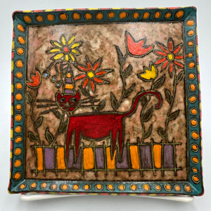 Mara Gross - NY What interests me about cats is that they symbolize a complicated combination of qualities. Cats can be seen as independent, aloof, or even aggressive; at the same time they can be seen as playful, loving, and cuddly. These plates and bowls are a celebration of these complexities, with a hope that we recognize how “cat qualities” are inside each of us.