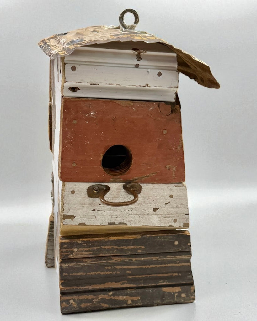 Each unique, one-of-a-kind birdhouse created from reclaimed wood, metal, and misc old hardware, kept in as-found colors and textures.