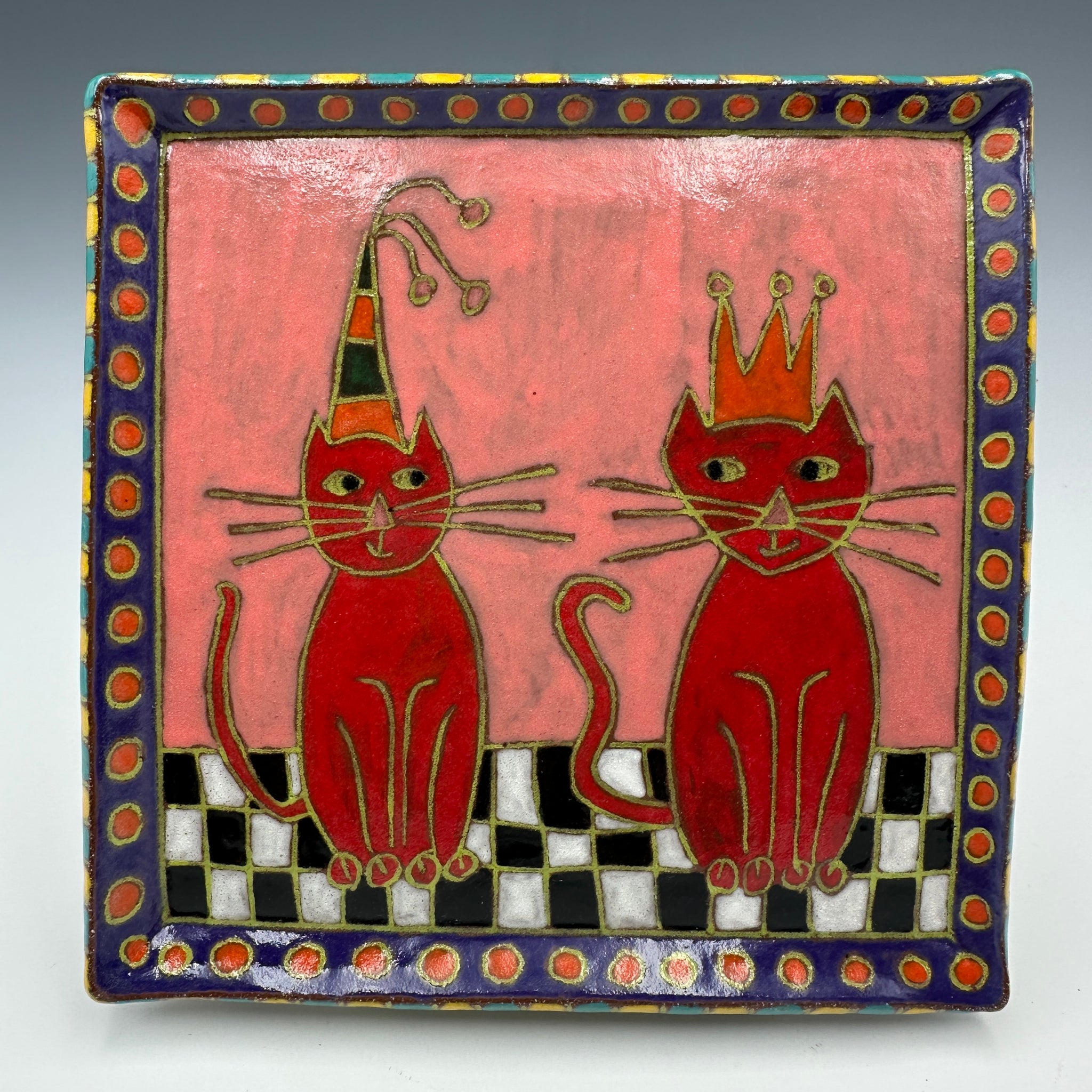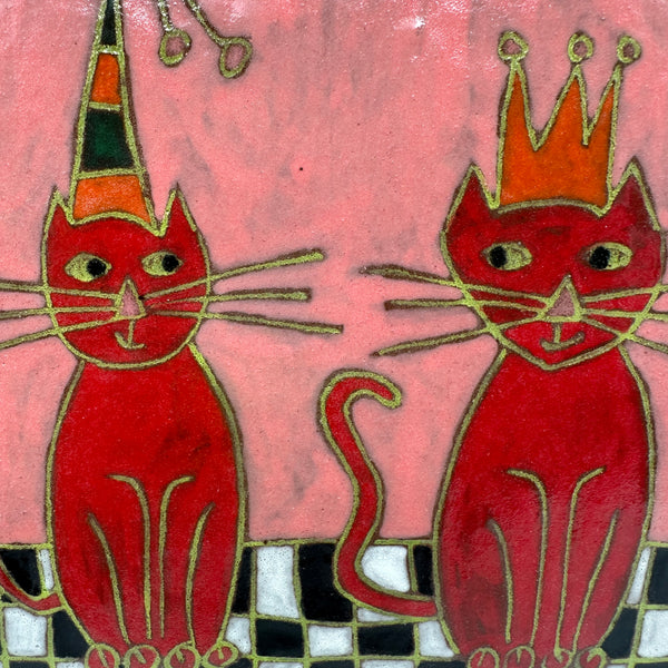 Two Red Cats with Pink Background Square Plate