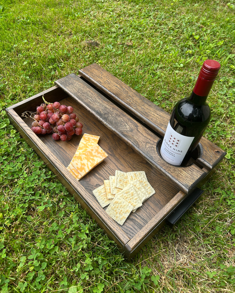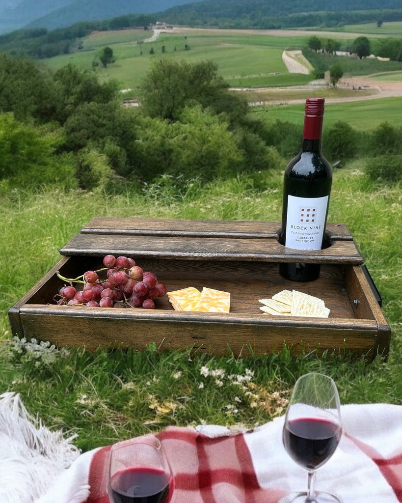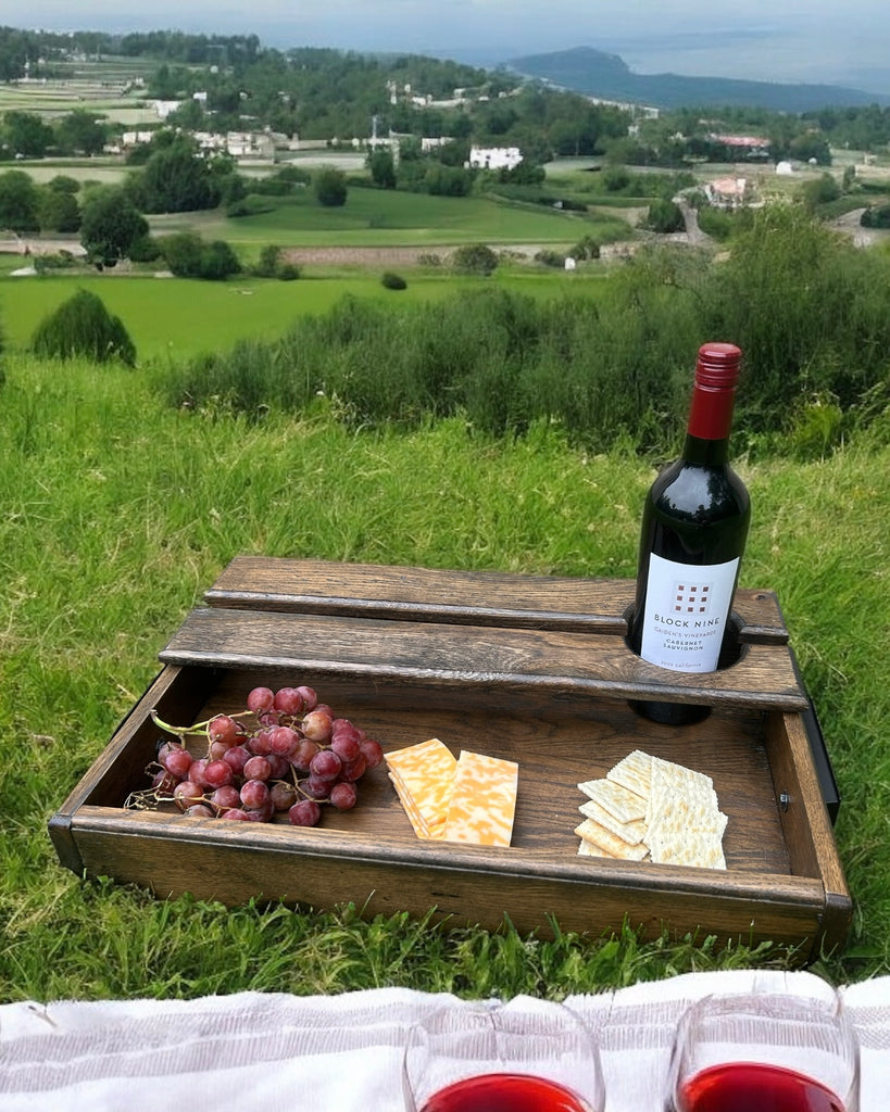 Whether you're planning a romantic afternoon for two or a small group picnic with friends, this tray makes serving easy and stylish. The deep walnut tones and natural wood grain give it a timeless, rustic charm—perfect for everything from vineyard outings to backyard get-togethers.