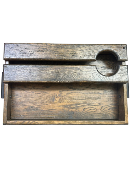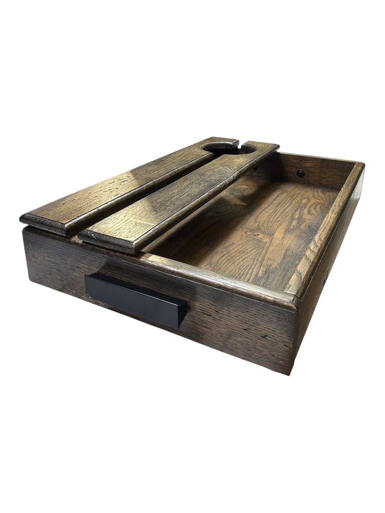 Elevate your next outdoor gathering with our handcrafted Wine & Cheese Picnic Tray, made from rich, dark walnut wood. Designed with both beauty and functionality in mind, this elegant tray securely holds four stemmed wine glasses, your favorite bottle of wine, and an assortment of cheeses, fruits, or snacks.